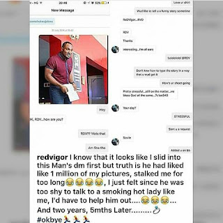 It's no longer news that actor, Blossom Chukwujekwu's wife was the first to slide into his DM about 2 years ago and today it landed her in his house as his wife. See the screenshot of their chat below
